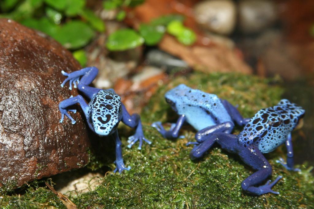 La rana flecha azul es de un color poco visto en el reino animal. Es otro de los ejemplares de ranas venenosas. No obstante, dicho color tan brillante y vistoso, como en el resto de los casos, sirve para alertar a los depredadores de su alta toxicidad. Vive en bosques tropicales de Brasil y el sur de Surinam, mide alrededor de entre 3 y 4 cm. y es una especie diurna.