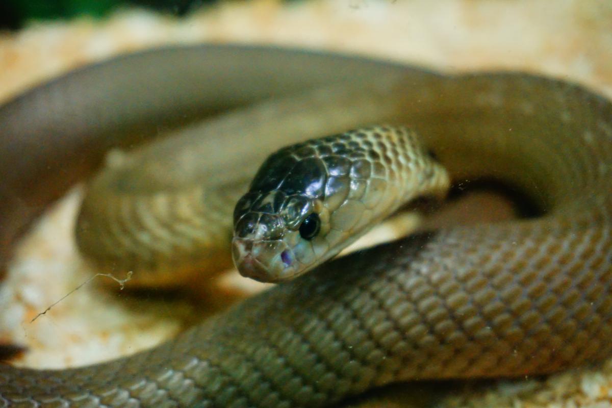 Su potente neurotóxico puede matar un elefante en horas. Exhibe un inusual cuidado parental, construye nidos y protege los huevos. Aunque es temida, su población disminuye por destrucción de su hábitat forestal y persecución humana.