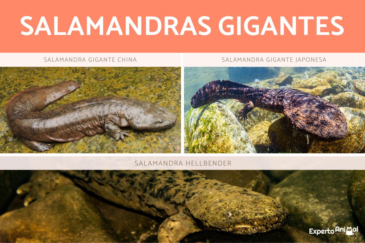 Otro tipo de estos anfibios son las salamandras gigantes, llamadas así precisamente por sus grandes tamaños. Existen solamente tres especies: