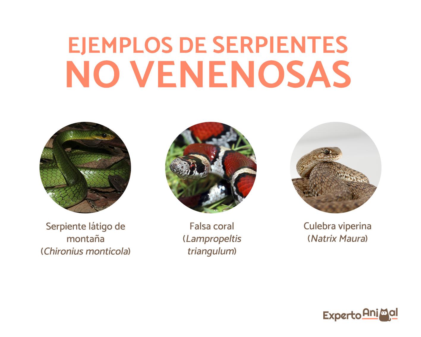 Otros nombres de serpientes no venenosas de España son la culebra de herradura (Hemorrhois hippocrepis), la culebra de escalera (Rhinechis scalaris) y la culebra de collar (Natrix natrix).
