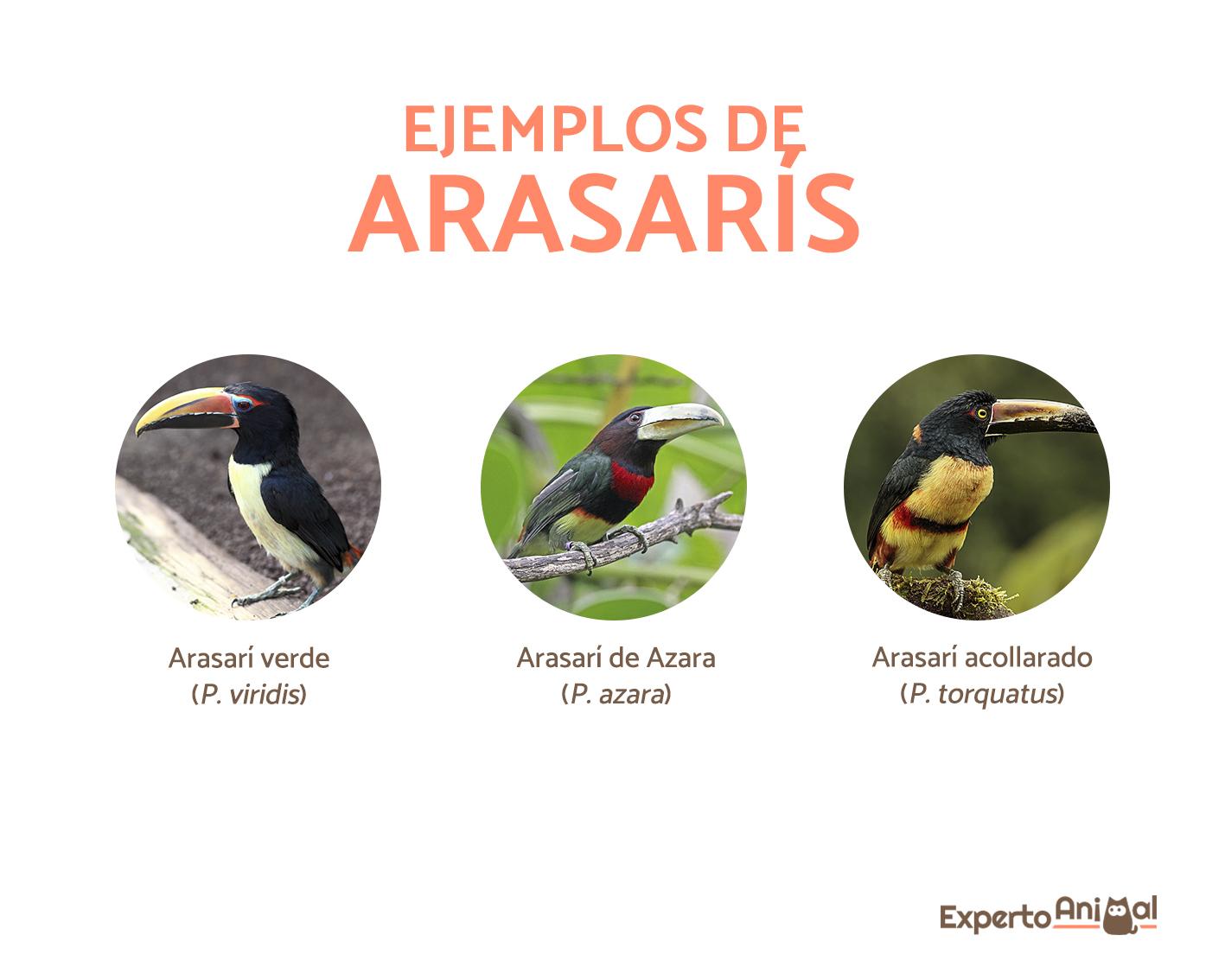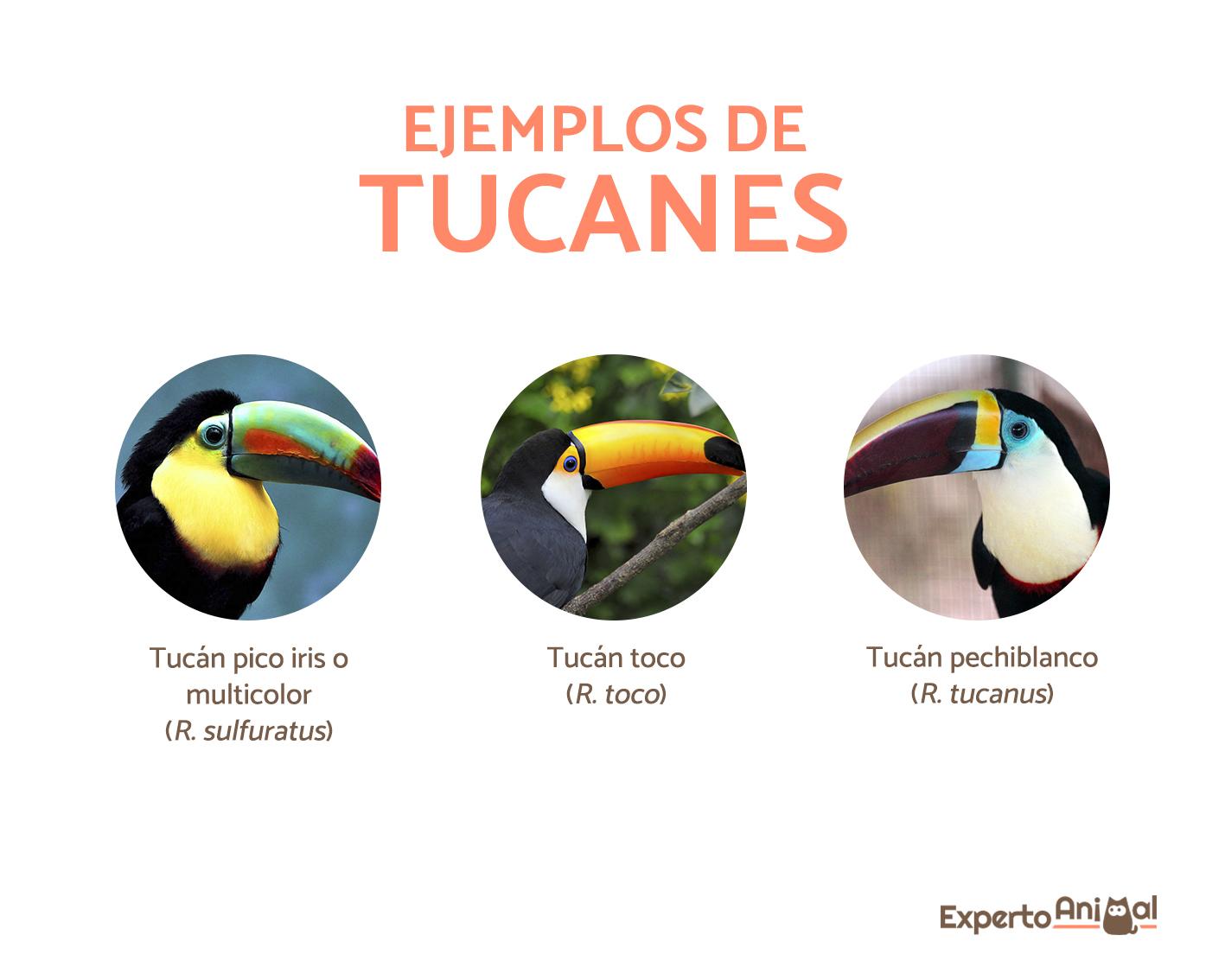Tradicionalmente, los tucanes se han dividido en dos grupos según su tamaño: los arasarios o pequeños tucanes y los tucanes verdaderos. Sin embargo, según la clasificación moderna, los tipos de tucanes que existen son los siguientes: