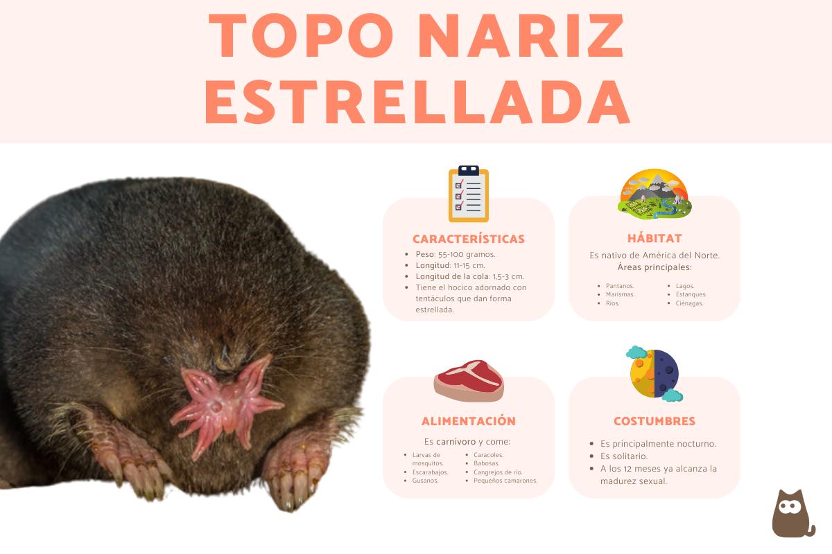 Ahora que ya sabes las características del topo nariz estrellada y dónde vive, vamos a resumir algunas curiosidades sobre él que hemos visto a lo largo del artículo: