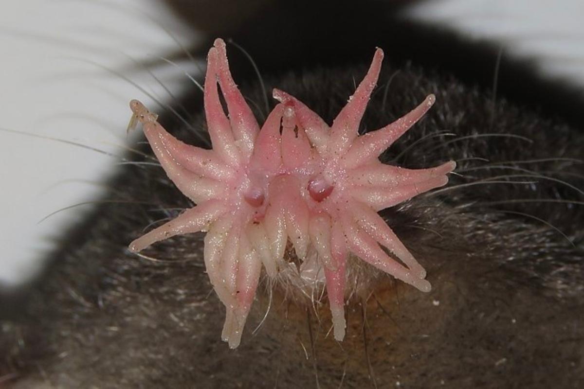 Una de las características más distintivas del topo de nariz estrellada es su hocico, adornado con unos tentáculos carnosos que se asemejan a una estrella. Estas estructuras sensoriales están cubiertas de pequeños órganos táctiles conocidos como órganos de Eimer. Están compuestos por una serie de receptores nerviosos y células sensoriales especializadas que son extremadamente sensibles a las vibraciones y movimientos en el agua.