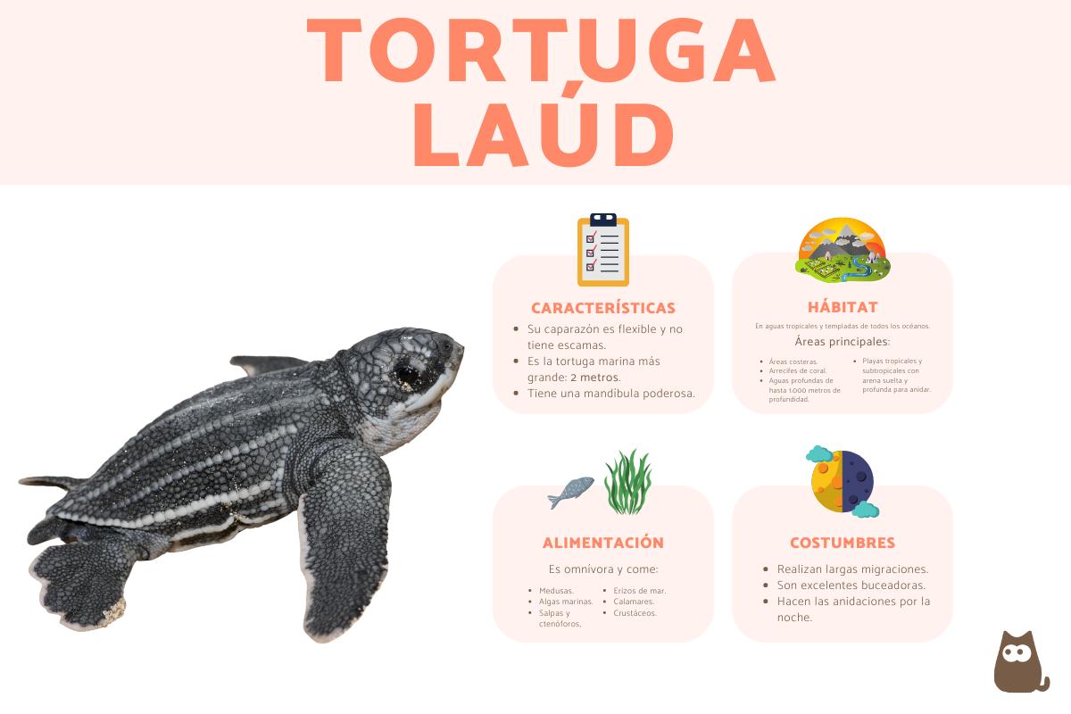 La tortuga laúd (Dermochelys coriacea) se encuentra en un linaje evolutivo separado de otras tortugas marinas modernas. A diferencia de las demás especies de tortugas marinas que pertenecen a la familia Cheloniidae, la tortuga laúd es la única especie en la familia Dermochelyidae. Esto sugiere que su evolución temprana la distinguió de otros grupos de tortugas marinas hace millones de años. Te hablamos de los "Tipos de tortugas marinas" en el siguiente artículo.