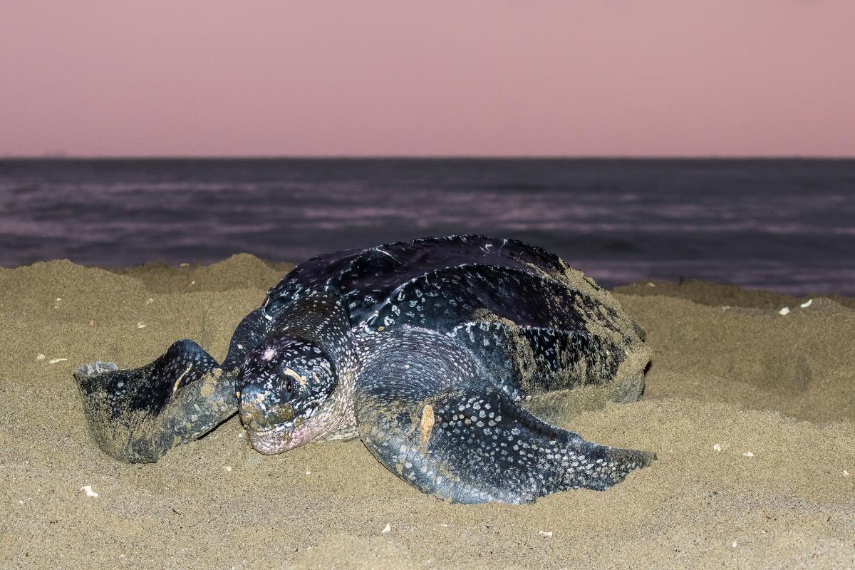Otra costumbre de esta especie es la anidación nocturna. Las hembras tienden a anidar durante la noche en playas tropicales y subtropicales. Este comportamiento nocturno reduce la exposición a depredadores terrestres y aprovecha la oscuridad para proteger la puesta de huevos. Así mismo, aunque no es tan común como en otras especies de tortugas marinas, las tortugas laúd a veces pueden anidar en grupos en la misma playa. Esto puede proporcionar cierta protección contra depredadores y aumentar las posibilidades de supervivencia de los huevos.