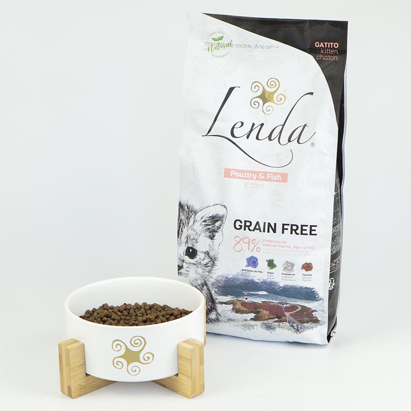 Si nos decantamos por el pienso comercial, es imprescindible que sea de calidad, como por ejemplo Lenda Kitten Poultry & Fish. Este alimento ofrece un 89 % de proteínas de aves de corral, atún y krill, de manera que vemos totalmente cubierta esta necesidad, además de otras ya mencionadas, como el aporte de ácidos grasos y vitaminas.