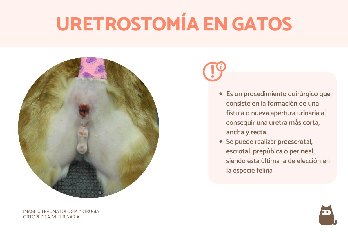 La uretrostomía felina es un procedimiento quirúrgico que consiste en la formación de una fístula o nueva apertura urinaria al conseguir una uretra más corta, ancha y recta.