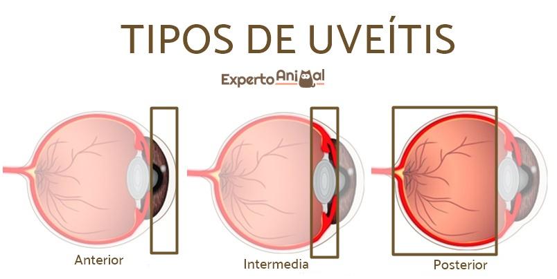 El término "uveítis" es aplicado por la Medicina Veterinaria para designar diferentes procesos inflamatorios que atienen la úvea de los felinos y caninos. Dependiendo de la región ocular afectada, tenemos los siguientes tipos de uveítis: