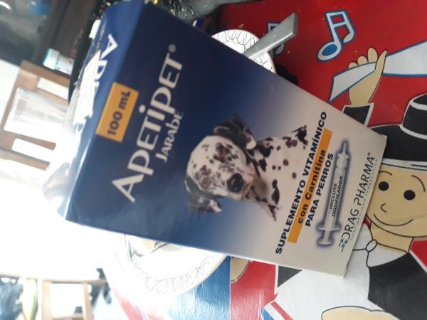 Hola! Mi perrito pesa 1'250 mg y mide aprox 20 cm; le recetaron apetipet jarabe 100 ml y nose cuanto le tengo que dar. Help me please.