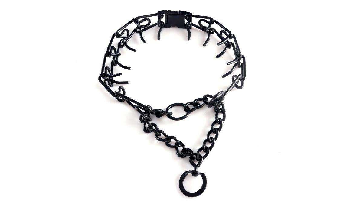 El collar de ahogo o ahorque es un instrumento a modo de soga con nudo corredizo que se cierra, apretando el cuello del perro, cuando se ejerce un tirón sobre él, mientras que el collar de castigo o con pinchos, hace referencia, por lo general, a una cadena con púas metálicas o plásticas que, igualmente, ejerce presión sobre el cuello del animal cuando se tira de él. Un estudio de revisión bibliográfica determinó, en el año 2017, que el uso de este tipo de métodos de entrenamiento aversivos puede poner en riesgo la salud física y mental de los perros y que no existe evidencia de que su uso sea más efectivo que el refuerzo positivo[3].