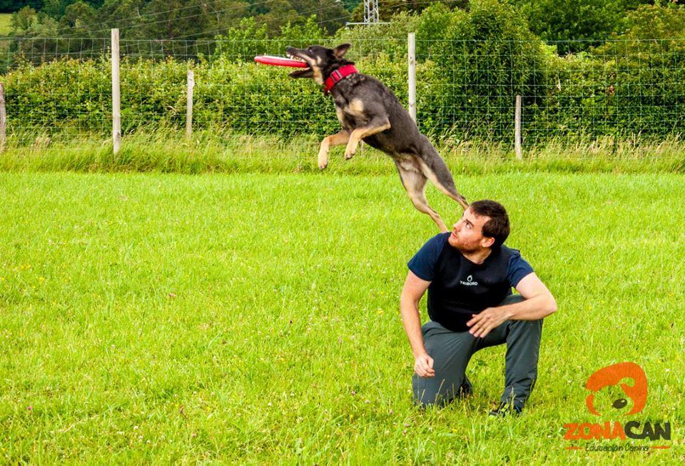 Pero además, en ZONACAN podemos descubrir el DogFrisbee, una disciplina deportiva en la que perro y humano interactúan mediante uno o varios discos. El objetivo es que el guía lance los fisbees para que el perro los atrape correctamente en el menor tiempo posible. En este caso, pondremos en forma a nuestro perro mientras aumenta nuestro vínculo con él, combinando de forma positiva juego y compenetración.